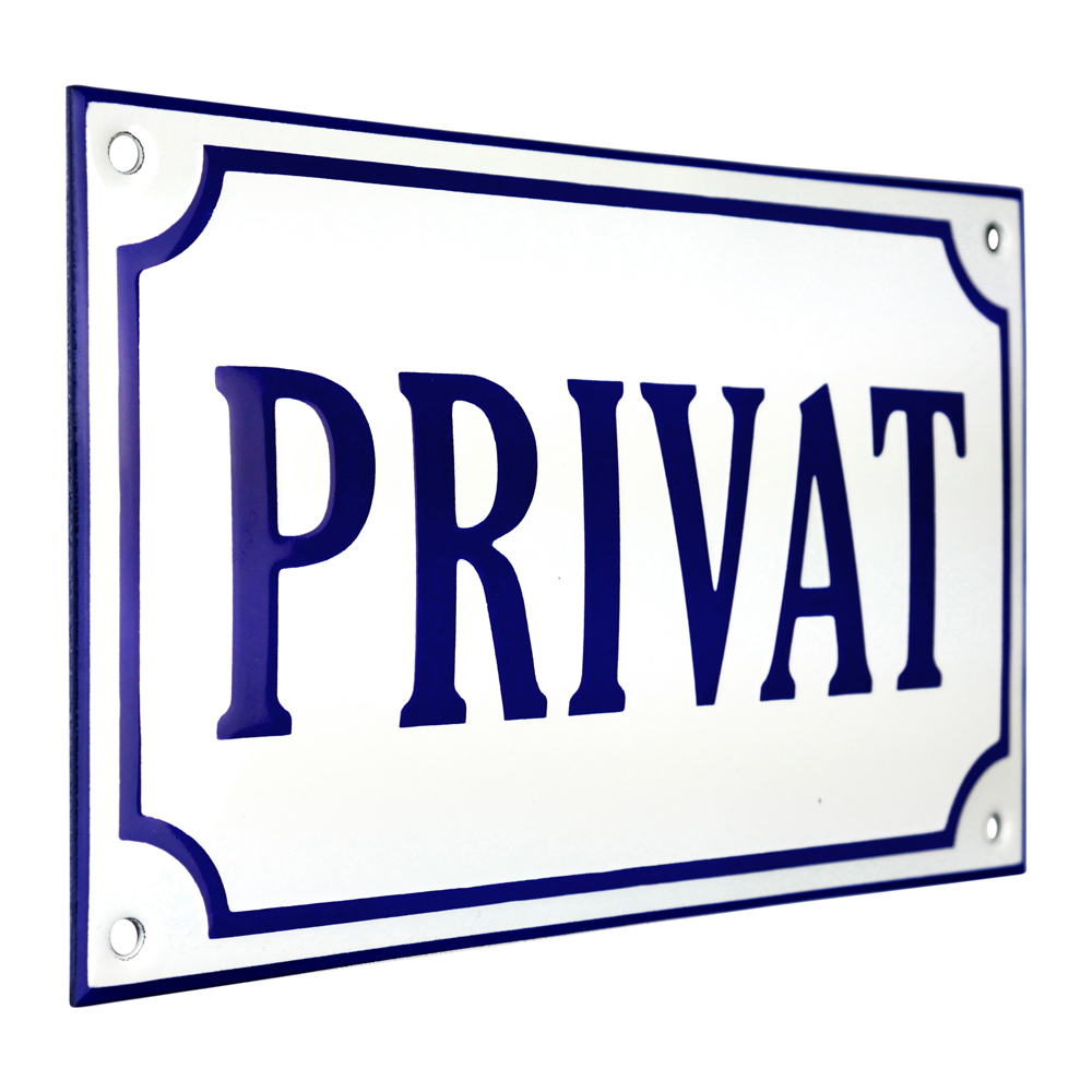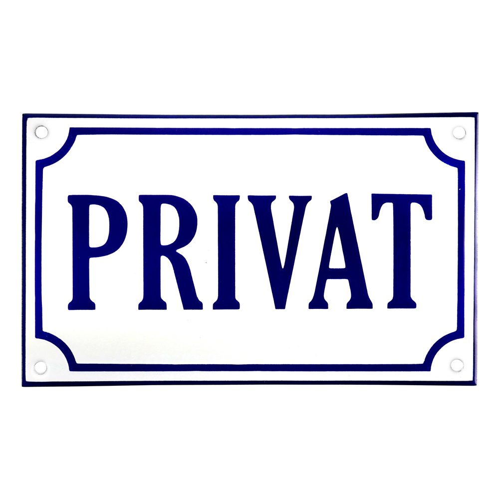 Emaljskylt PRIVAT vit - blå 20 x 12 cm modell 36-3